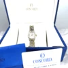 Concord Saratoga SL A bold and elegant design, the Concord Saratoga SL ladies’ watch combines the timeless beauty of stainless steel and 18k gold. This stunning timepiece looks and works flawlessly, offering both style and precision. It has all the original links, Swiss quartz movement with a recent battery service, ensuring reliable performance. Comes with original box, paperwork, card, and wallet. Serial # 15-36-275 Purchased at Bailey, Banks, and Biddle in 2000 YEAR 2000 CASE Stainless steel and 18k gold DIAL Elegant Silver dial MOVEMENT Swiss quartz movement BRACELET Stainless steel and 18k gold bracelet with all original links