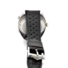 This Heuer Autavia 12 “Viceroy” Ref. 1163V Automatic Chronograph is a true barn find, presented in the condition it was purchased in from the original owner’s grandchild—truly a time capsule. The watch features the original stainless steel case, which remains sharp with great bevels and retains its sunburst brushing. The matte black reverse-panda dial remains in excellent condition, with contrasting white sub-registers and bright red accents that pop. The original handset and tachymeter bezel add to its vintage charm, with the bi-directional elapsed time bezel being nearly mint and functioning perfectly. Powered by the Heuer Cal. 12 self-winding automatic chronograph movement, the watch is functioning beautifully, with all chronograph functions working flawlessly. This timepiece has been carefully preserved with no work done, ensuring it remains in its authentic, vintage state. In addition, this example includes the original leather watch strap, which remains in wearable condition with no visible wear at all, as well as the original buckle. See the photographs for a detailed view, as we have made every effort to describe this watch in great detail. The calibre 1163 is marked between the lugs at 12:00, and the serial number 209138 is marked between the lugs at 6:00, adding to the authenticity and historical value of this piece. The Heuer Autavia “Viceroy” Chronograph represents an interesting time in Heuer’s company history. With the debut of their first automatic chronograph movement in 1969 (the Calibre 11), sales of Heuer automatic chronograph models moving into the 1970s were extremely slow. Who would have thought that an unlikely partnership with Viceroy Cigarettes would save the day? It doesn’t get much cooler than the “Viceroy” in the vintage chronograph world—especially if you’re a car enthusiast like many of us.
