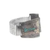 This Sterling Silver watch bracelet features intricate turquoise and coral chip inlay and a Kachina design with stamped edging, created by Navajo artisans during the 1970s. The design incorporates traditional Native American elements, with vibrant turquoise and coral pieces set into the sterling silver. The Kachina design adds a cultural and symbolic touch, while the stamped edging provides an added layer of detail and texture. The bracelet retains its original patina, contributing to its vintage charm and character. This bracelet comes from my personal collection, accumulated over many years in the Native American jewelry business my family was a part of from the early 1970s until the late 80s. I’m now offering many of these treasured pieces for sale, ensuring they are enjoyed by collectors and those who appreciate the skill, artistry, and history behind them. The materials used include sterling silver, turquoise, and coral chip inlay, with a Kachina design and stamped edging. The bracelet is from the 1970s and originates from the Navajo people. It is in excellent vintage condition with its original patina, adding to its authentic appeal.