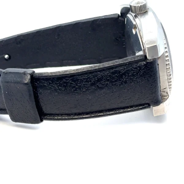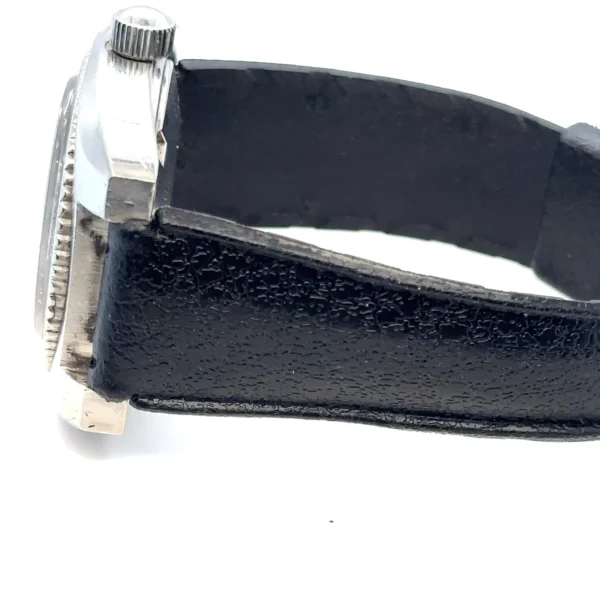 Elevate your collection with a standout iteration of a diving icon. This vintage 1970s Zodiac Sea Wolf breaks away from the common matte finishes of the era, featuring a stunning glossy black dial. The deep, mirror-like inky finish provides a sophisticated backdrop that makes the applied hour markers and signature orange accents truly pop, offering a high-end aesthetic rarely seen in mid-century tool watches.