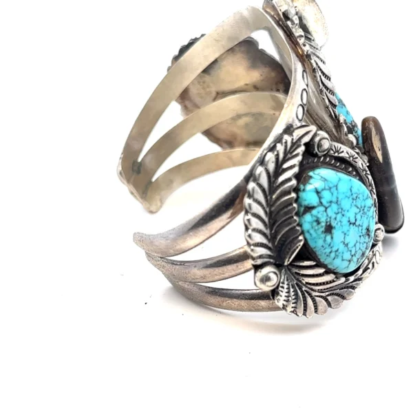 Vintage Southwestern Silver Turquoise and Claw Statement Cuff Bracelet